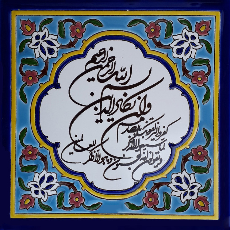 کاشي هفت رنگ يکي از هنرهاي اصيل ايران زمين است که امروزه نيز زيبايي و طراوت گذشته ي خود را همچنان حفظ کرده است. اين محصول طرحی مذهبی از کاشي هفت رنگ است که به دست هنرمندان اصفهان تهيه شده است. رنگ کاشي ها کوره اي و ثابت است و هيچ گونه تغيير رنگي در مواجهه ي با آفتاب و آب و عوامل جوي رخ نخواهد داد.بر روی این کاشی عبارت وان یکاد نقش بسته است و برای نصب در سردر یا داخل خانه و یا هر محل دیگری بسیار مناسب است. علاوه بر این که براي نصب آن در فضاي داخلي از قاب يا پايه و استند می توان استفاده کرد.
