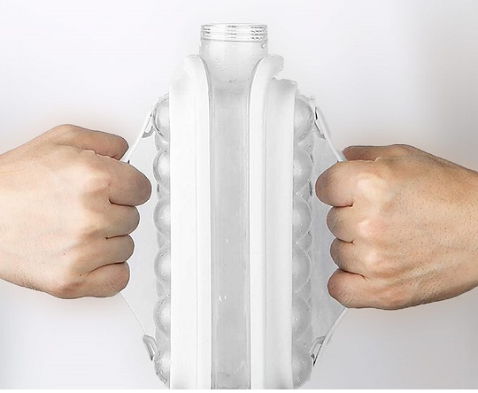 بطری قالب یخ توپی محصولی جدید و بسیار کاربردی در هر منزل و آشپزخانه ای می باشد که به کمک آن می توان براحتی یخ های قالبی توپی شکل و زیبا ایجاد کرد و در مواقع استفاده در عرض چند ثانیه براحتی از قالب جدا کرده و استفاده نمود. این قالب با تمامی مدل های قالب یخ تفاوت دارد زیرا به صورت یک قمقمه و بطری آب طراحی شده است و دارای درب مخصوص نیز می باشد که کمک می کند تا بوی فریزر بر روی آب و تکه های یخ هیچ تاثیری نداشته باشد و کاملا بهداشتی باشد.همچنین می توان در مواقع مسافرت نیز از این بطری مخصوص آب و یخ نیز استفاده کرد.